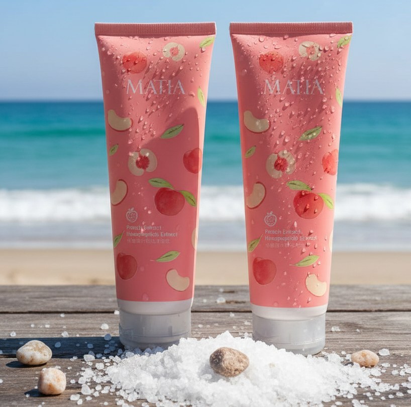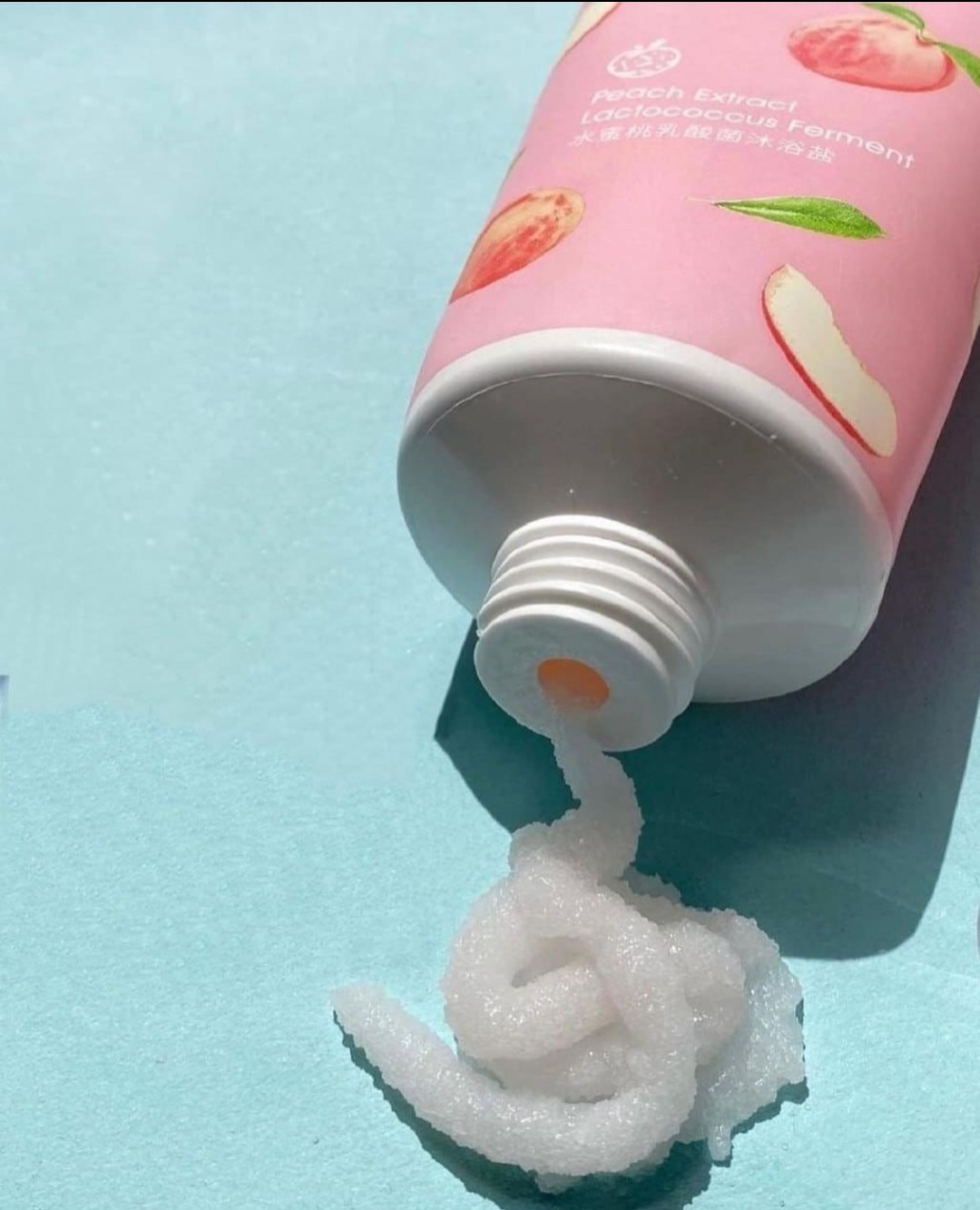 لایه بردار عصاره هلو و نعناع صاف و یکدست کننده پوست خاصیت روشن کنندگی پوست ضد جوش جوان کننده پوست مناسب برای انواع پوست ضد حساسیت از بین بردن موهای زیر پوستی کمک به رفع سلولیت دانه های نمک به عنوان لایه بردار